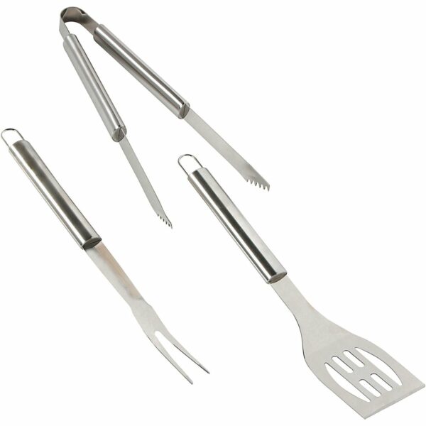 Das Jamestown Grillbesteck 3er-Set beinhaltet eine Grillzange, einen Grillwender und eine Grillgabel. Diese drei Werkzeuge sind die Grundausstattung für jeden Grillmeister.